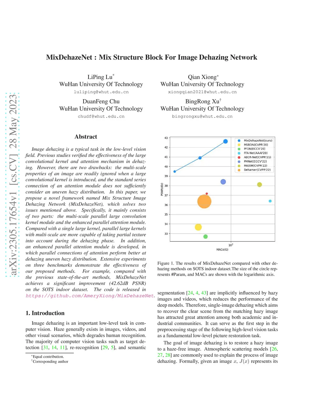 MixDehazeNet : Mix Structure Block For Image Dehazing Network