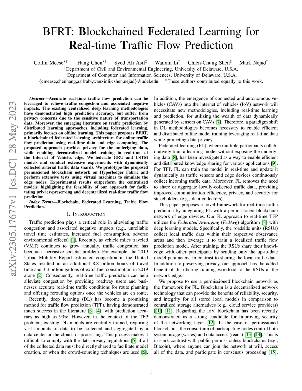 BFRT: Blockchained Federated Learning for Real-time Traffic Flow