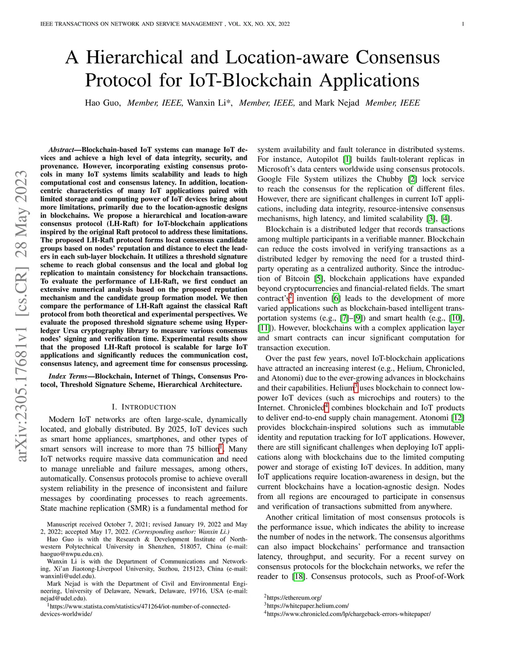 A Hierarchical and Location-aware Consensus Protocol for IoT-Blockchain