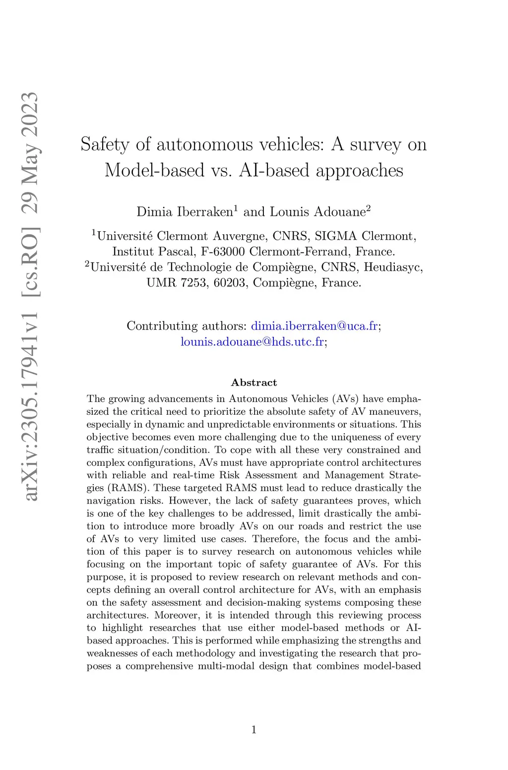 Safety of autonomous vehicles: A survey on Model-based vs. AI-based
