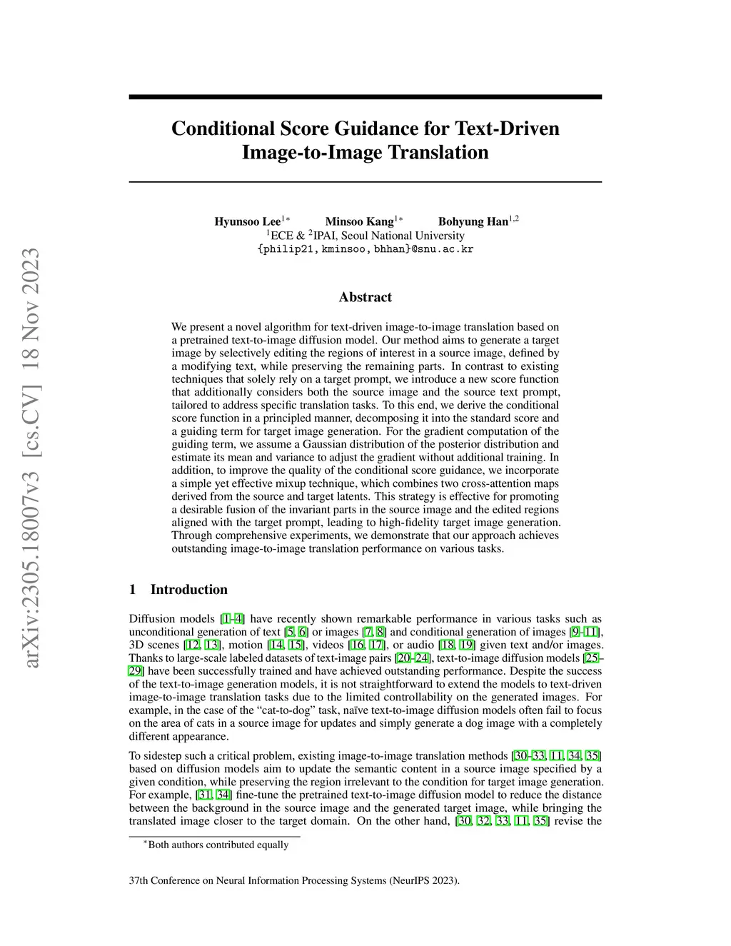 Conditional Score Guidance for Text-Driven Image-to-Image Translation