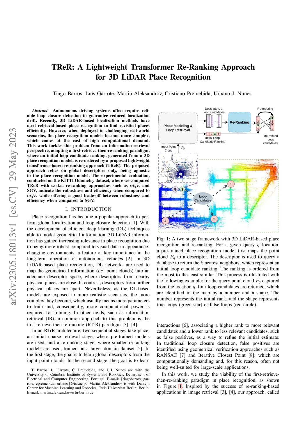 TReR: A Lightweight Transformer Re-Ranking Approach for 3D LiDAR Place