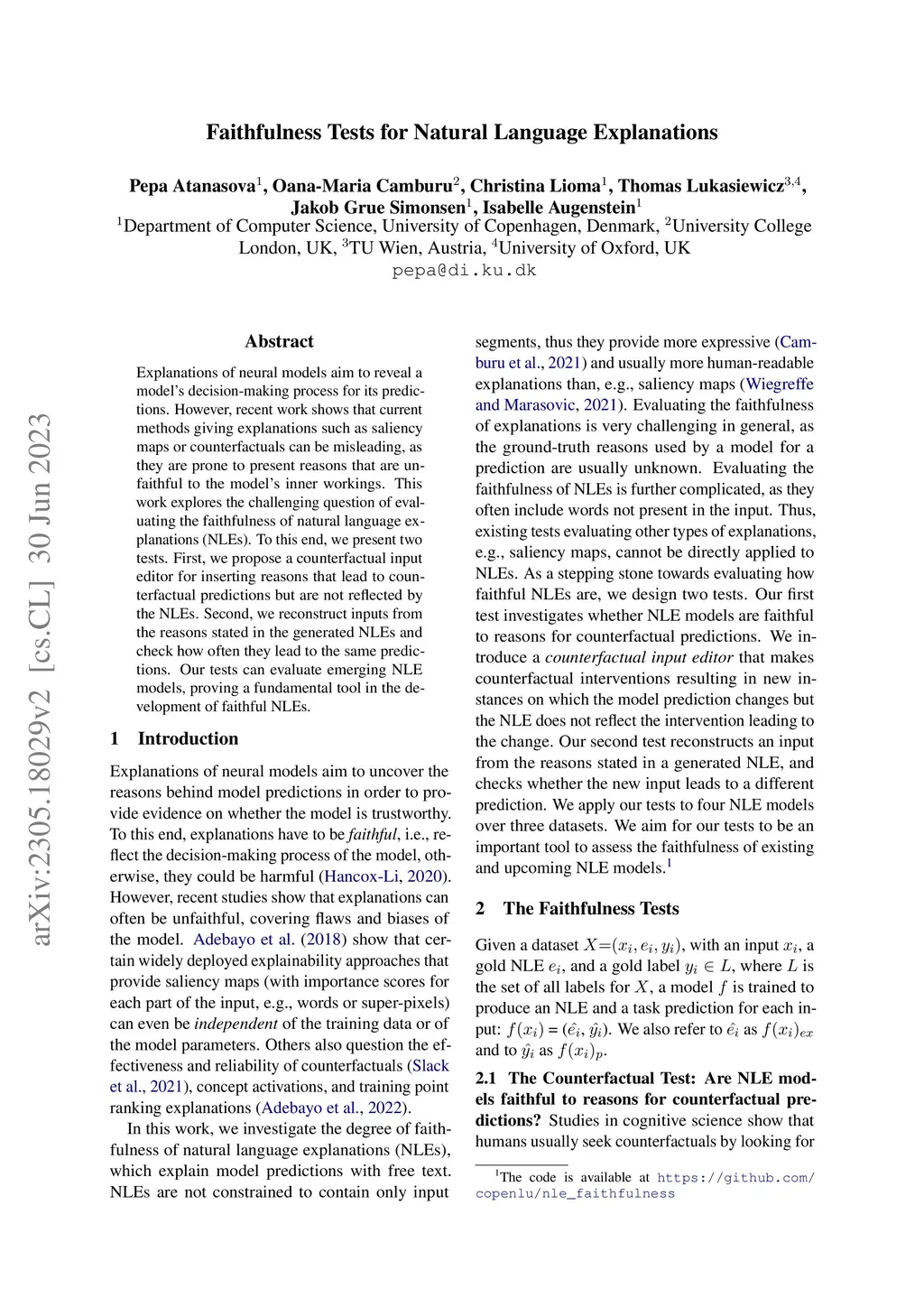 Faithfulness Tests for Natural Language Explanations