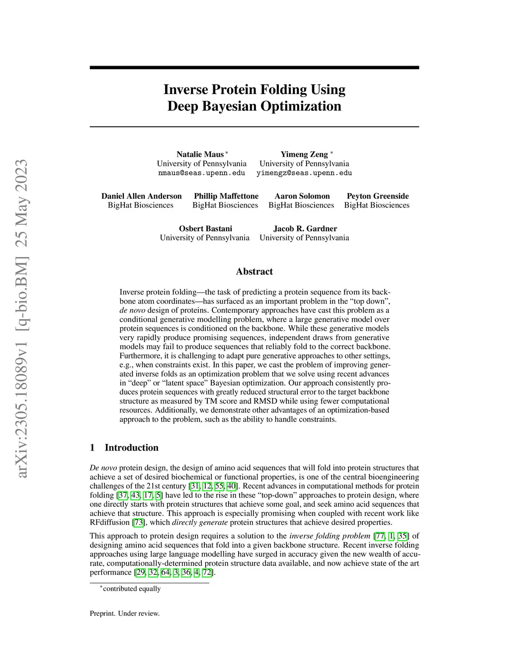 Inverse Protein Folding Using Deep Bayesian Optimization
