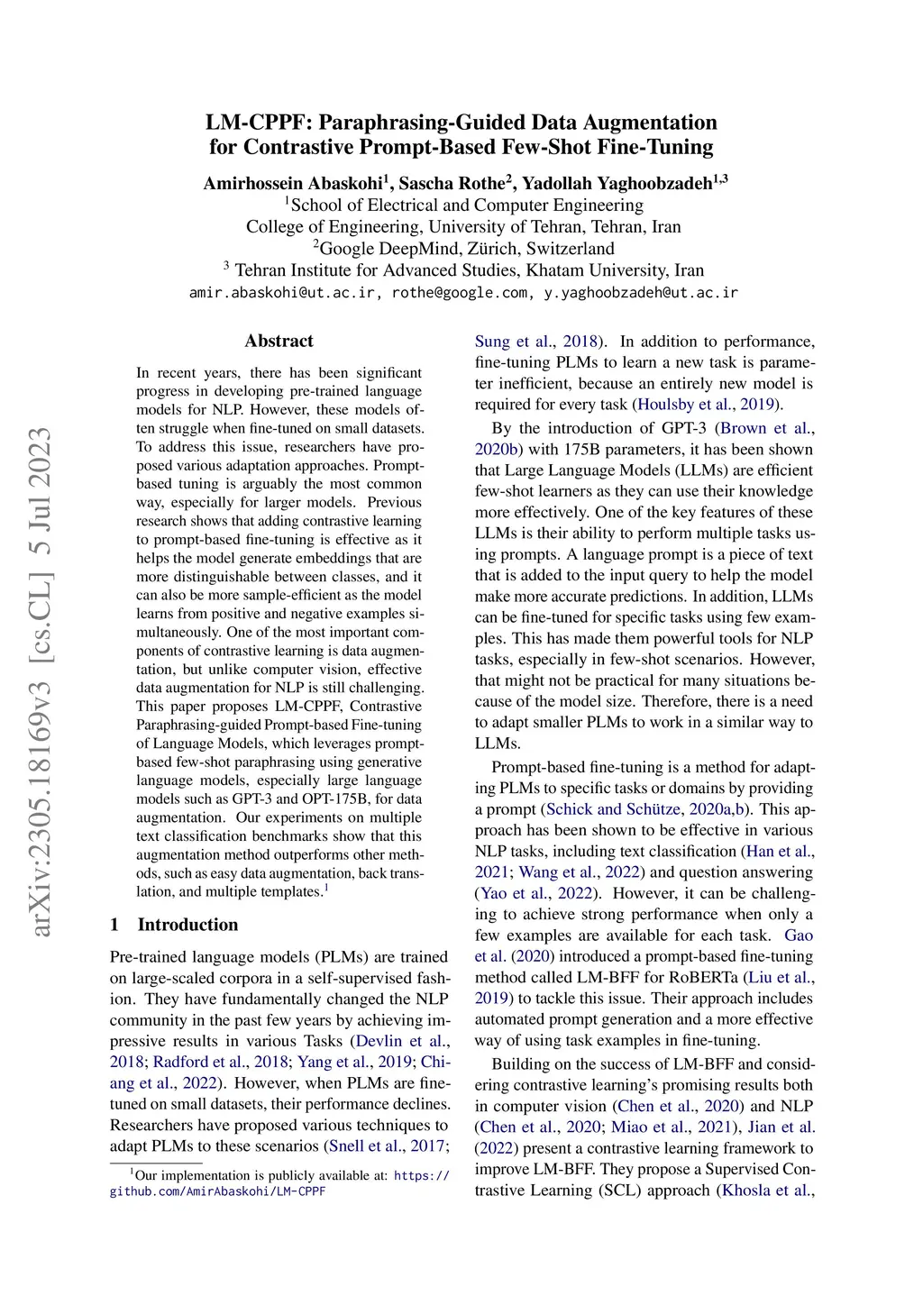 LM-CPPF: Paraphrasing-Guided Data Augmentation for Contrastive