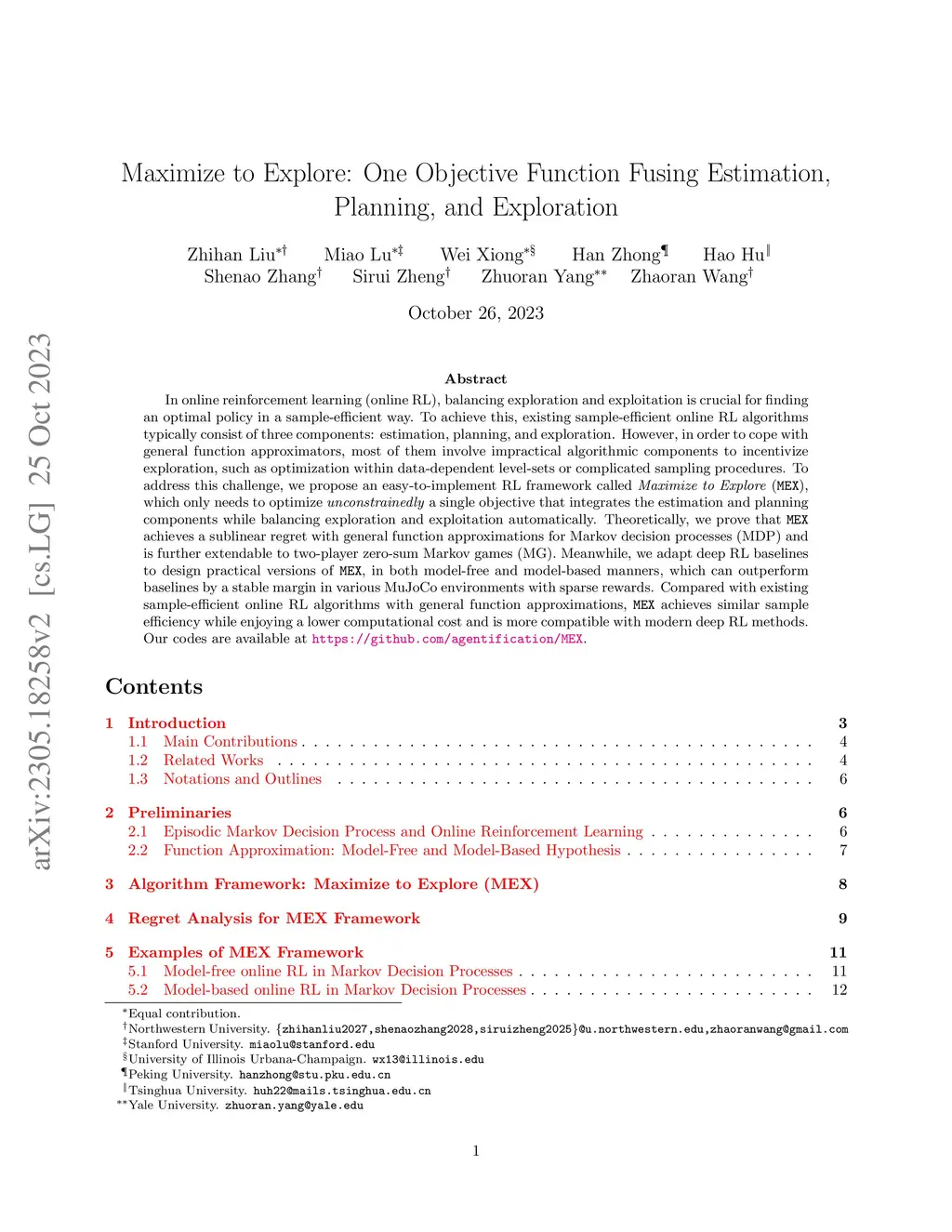 Maximize to Explore: One Objective Function Fusing Estimation, Planning,