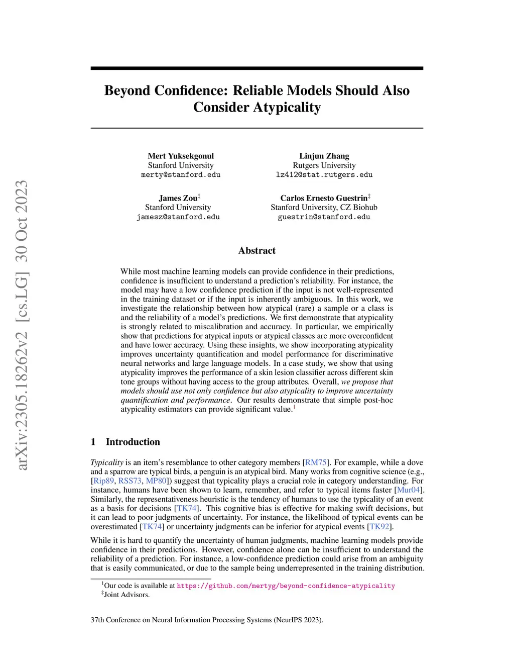 Beyond Confidence: Reliable Models Should Also Consider Atypicality
