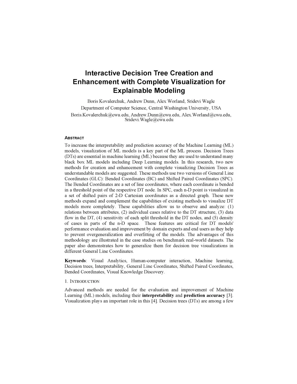To increase the interpretability and prediction accuracy of the Machine Learning (ML) models, visualization of ML models is a key part of the ML process. Decision Trees (DTs) are essential in machine learning (ML) because they are used to understand many black box ML models including Deep Learning models. In this research, two new methods for creation and enhancement with complete visualizing Decision Trees as understandable models are suggested. These methods use two versions of General Line Coordinates (GLC): Bended Coordinates (BC) and Shifted Paired Coordinates (SPC). The Bended Coordinates are a set of line coordinates, where each coordinate is bended in a threshold point of the respective DT node. In SPC, each n-D point is visualized in a set of shifted pairs of 2-D Cartesian coordinates as a directed graph. These new methods expand and complement the capabilities of existing methods to visualize DT models more completely. These capabilities allow us to observe and analyze: (1) relations between attributes, (2) individual cases relative to the DT structure, (3) data flow in the DT, (4) sensitivity of each split threshold in the DT nodes, and (5) density of cases in parts of the n-D space. These features are critical for DT models' performance evaluation and improvement by domain experts and end users as they help to prevent overgeneralization and overfitting of the models. The advantages of this methodology are illustrated in the case studies on benchmark real-world datasets. The paper also demonstrates how to generalize them for decision tree visualizations in different General Line Coordinates.