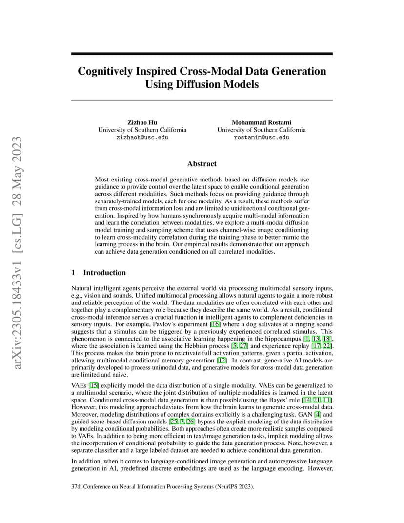 Cognitively Inspired Cross-Modal Data Generation Using Diffusion Models