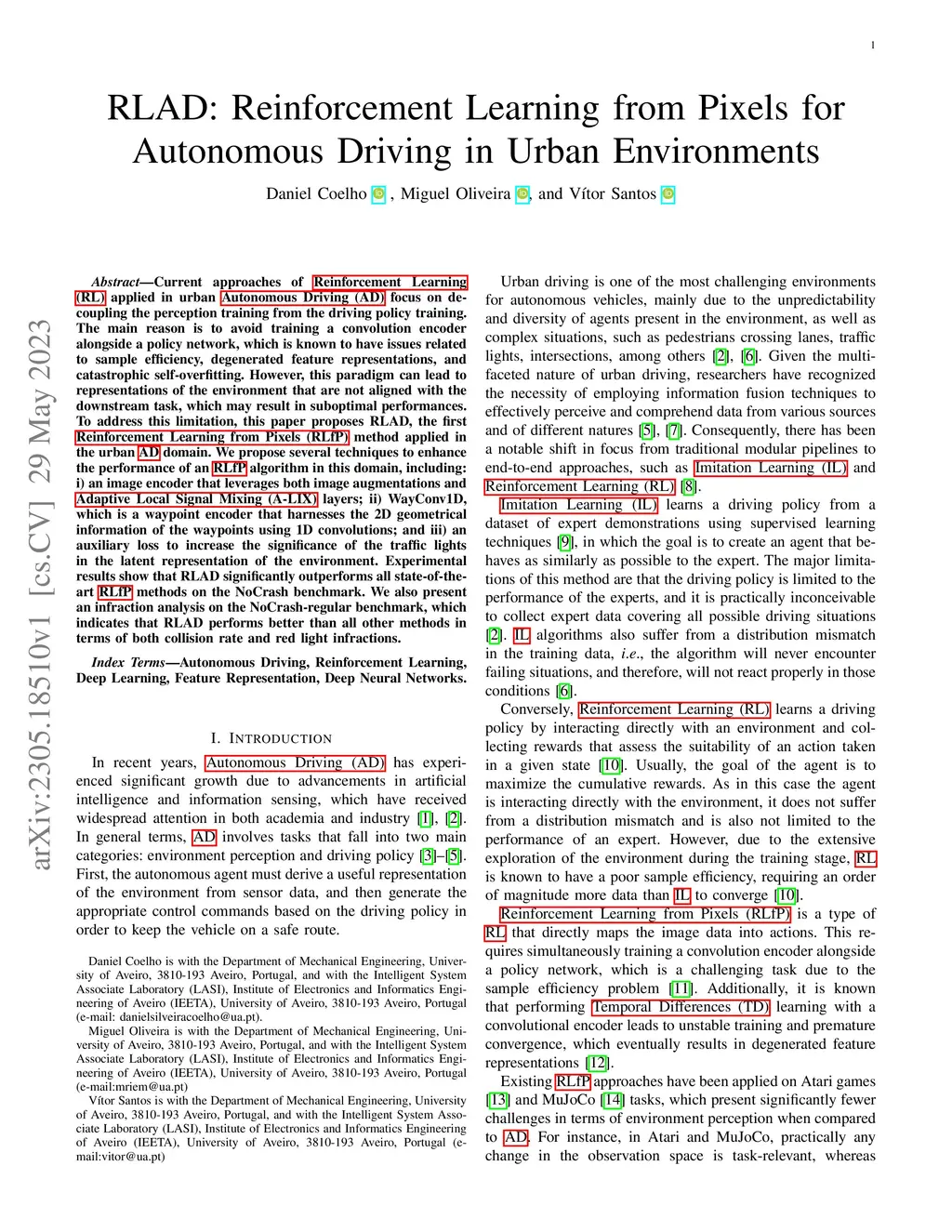 RLAD: Reinforcement Learning from Pixels for Autonomous Driving in Urban