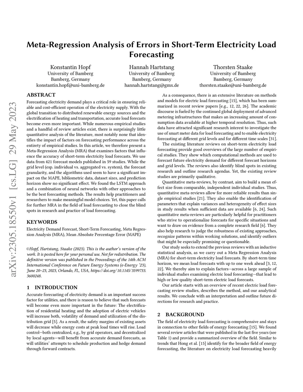 Meta-Regression Analysis of Errors in Short-Term Electricity Load