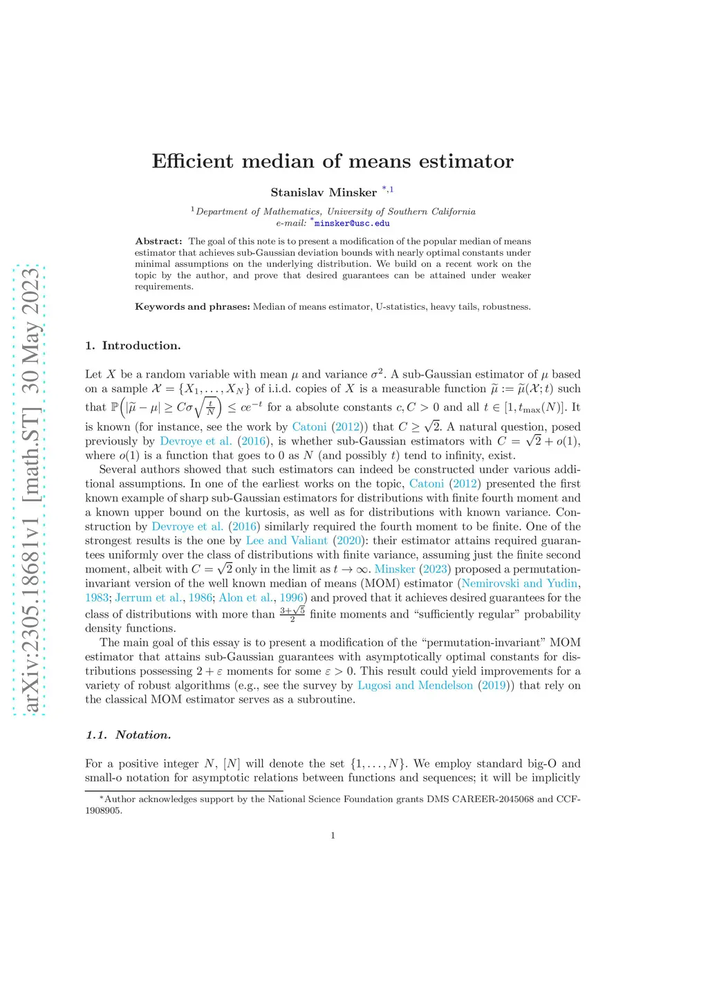 Efficient median of means estimator
