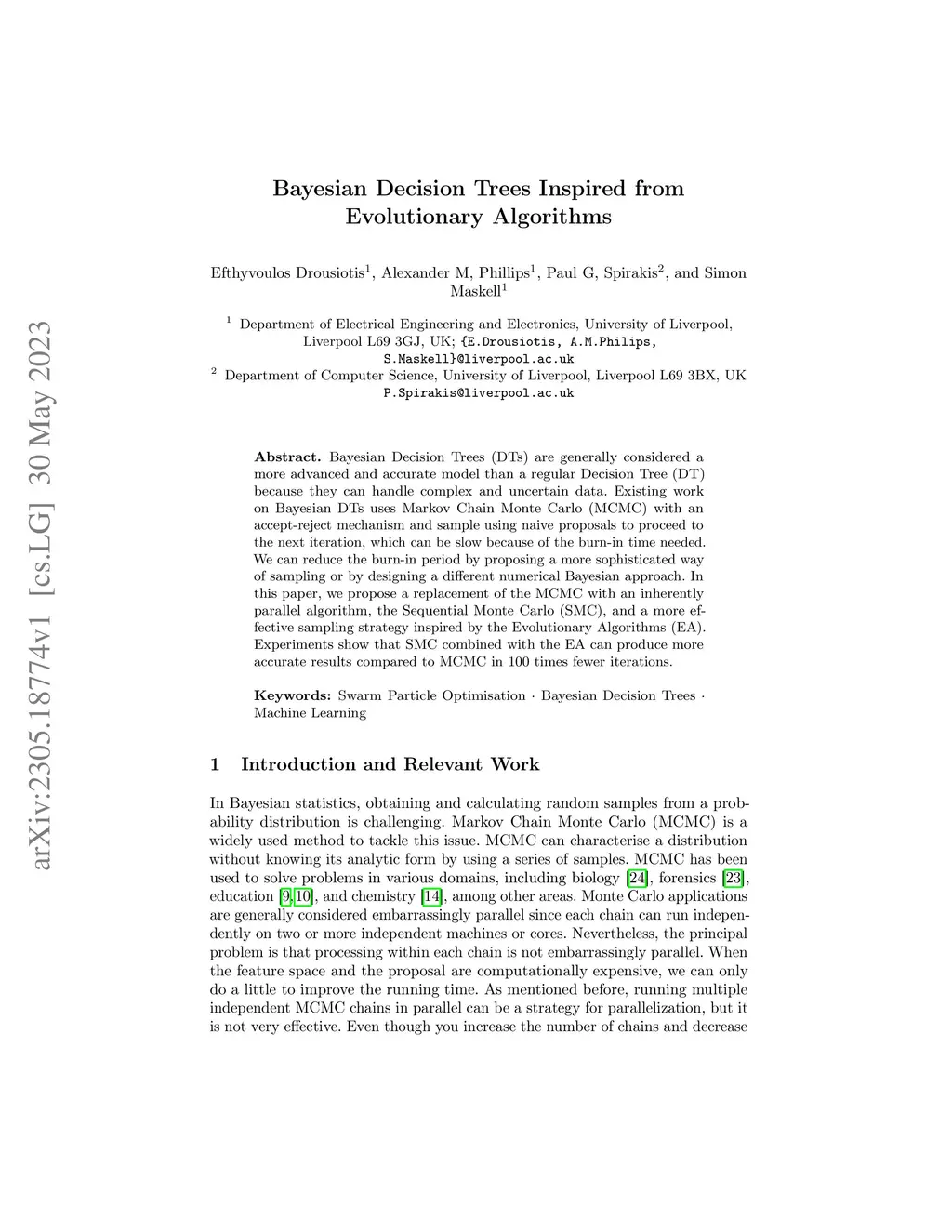Bayesian Decision Trees Inspired from Evolutionary Algorithms