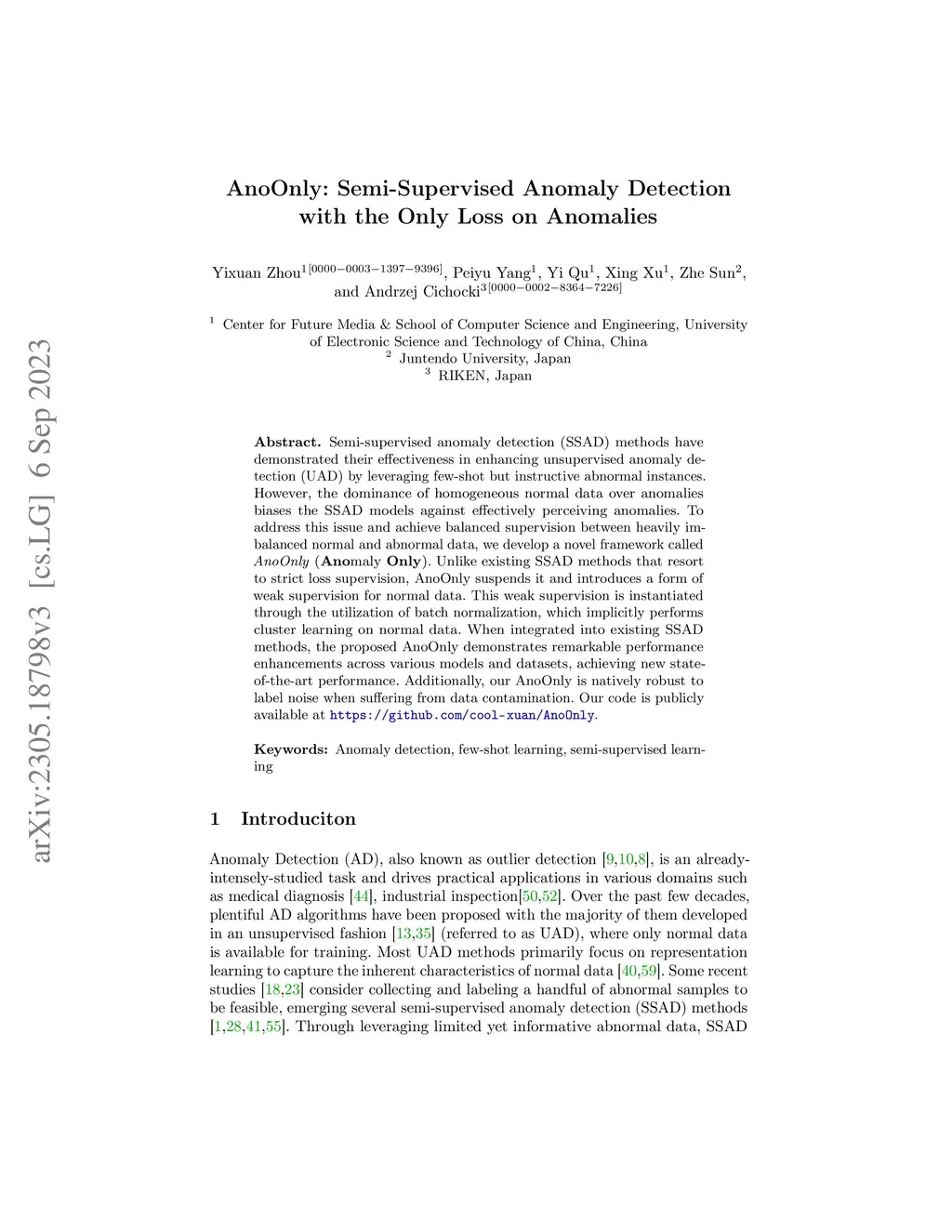 AnoOnly: Semi-Supervised Anomaly Detection with the Only Loss on