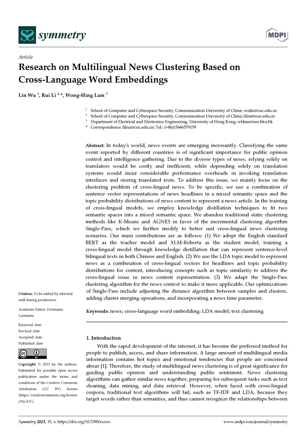 Research on Multilingual News Clustering Based on Cross-Language Word