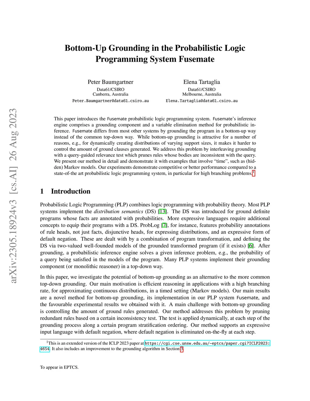 Bottom-Up Grounding in the Probabilistic Logic Programming System