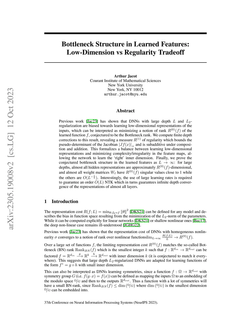 Bottleneck Structure in Learned Features: Low-Dimension vs Regularity