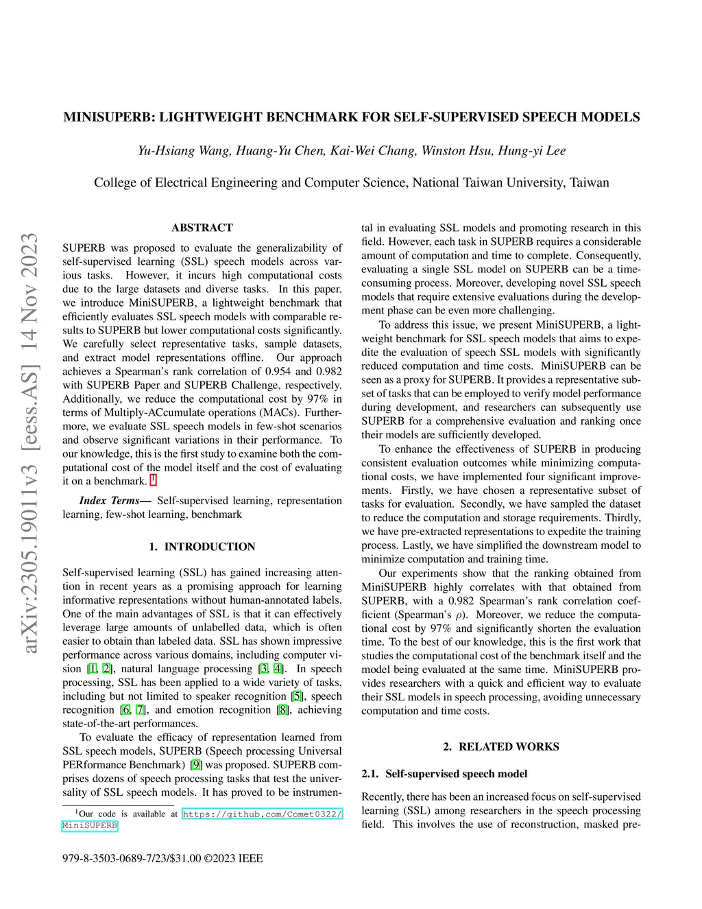 MiniSUPERB: Lightweight Benchmark for Self-supervised Speech Models