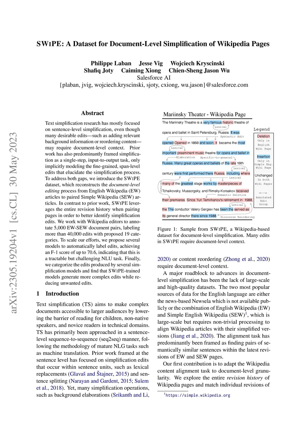 SWiPE: A Dataset for Document-Level Simplification of Wikipedia Pages