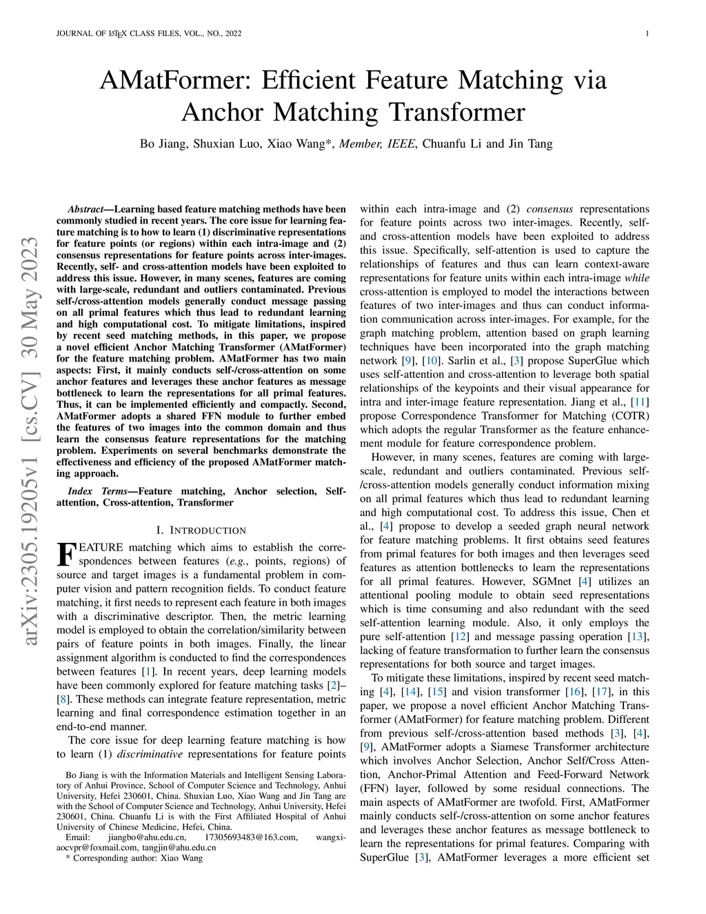 AMatFormer: Efficient Feature Matching via Anchor Matching Transformer