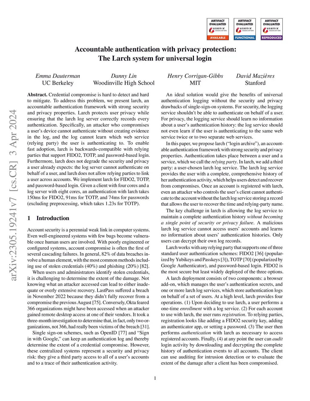 Accountable authentication with privacy protection: The Larch system for