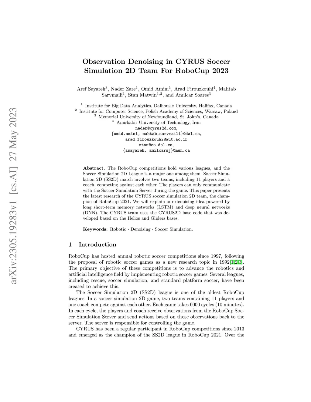 Observation Denoising in CYRUS Soccer Simulation 2D Team For RoboCup