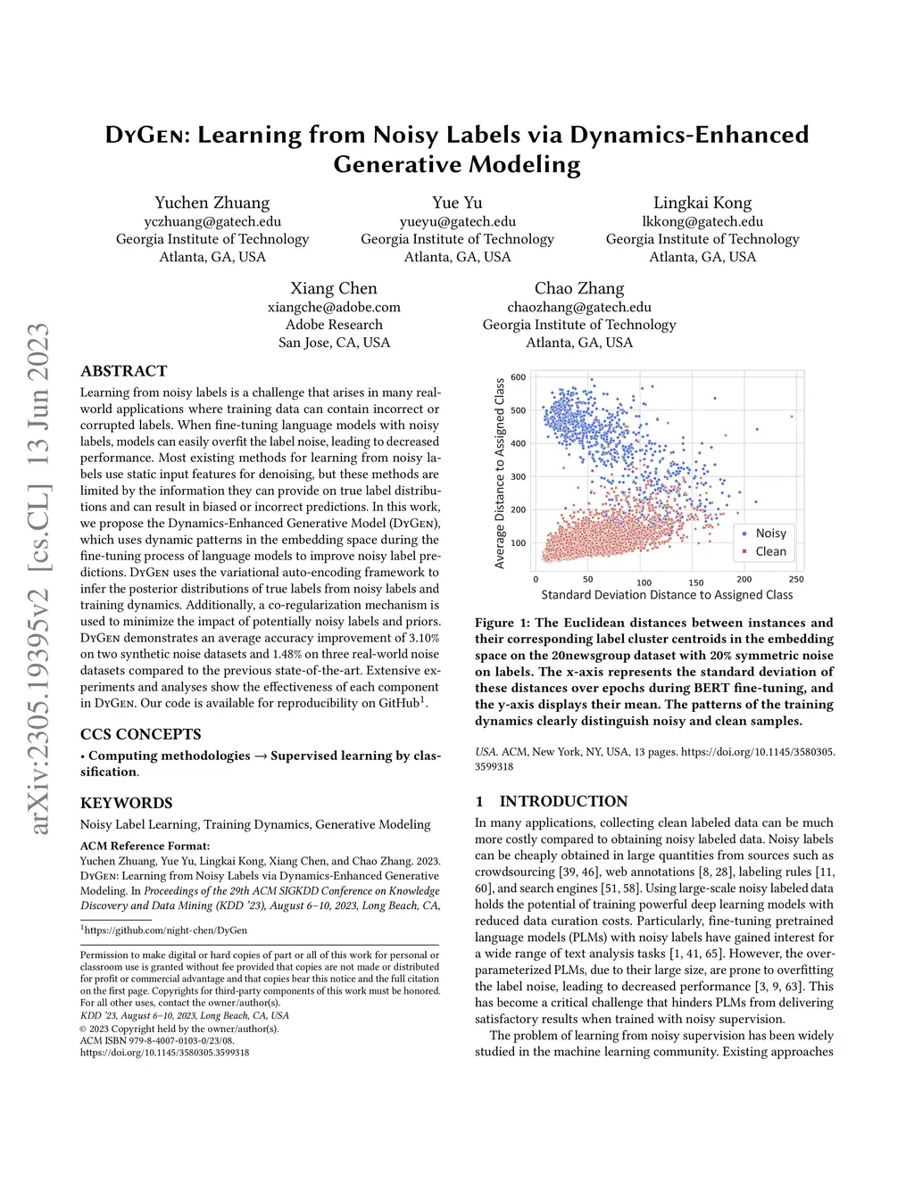 DyGen: Learning from Noisy Labels via Dynamics-Enhanced Generative