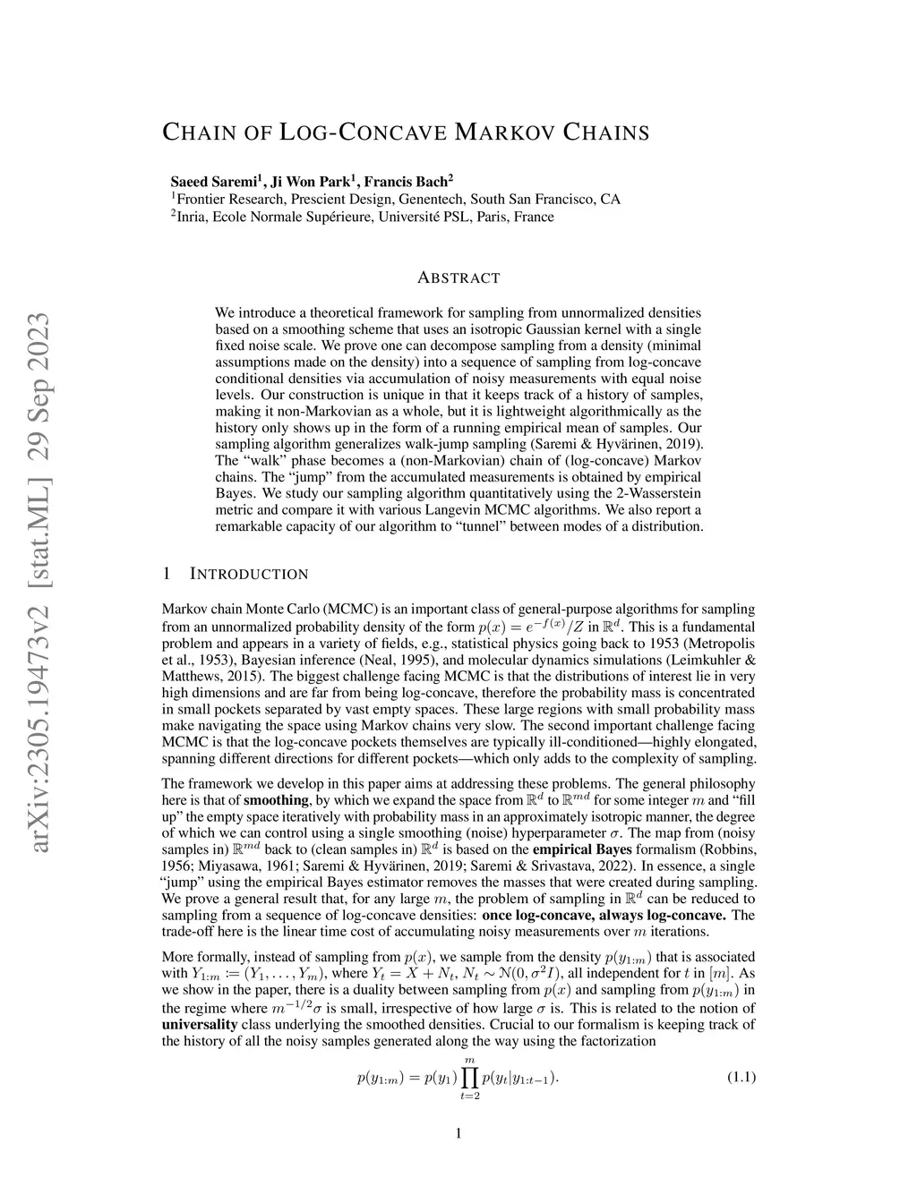We introduce a theoretical framework for sampling from unnormalized densities based on a smoothing scheme that uses an isotropic Gaussian kernel with a single fixed noise scale. We prove one can decompose sampling from a density (minimal assumptions made on the density) into a sequence of sampling from log-concave conditional densities via accumulation of noisy measurements with equal noise levels. Our construction is unique in that it keeps track of a history of samples, making it non-Markovian as a whole, but it is lightweight algorithmically as the history only shows up in the form of a running empirical mean of samples. Our sampling algorithm generalizes walk-jump sampling (Saremi & Hyv\"arinen, 2019). The "walk" phase becomes a (non-Markovian) chain of (log-concave) Markov chains. The "jump" from the accumulated measurements is obtained by empirical Bayes. We study our sampling algorithm quantitatively using the 2-Wasserstein metric and compare it with various Langevin MCMC algorithms. We also report a remarkable capacity of our algorithm to "tunnel" between modes of a distribution.