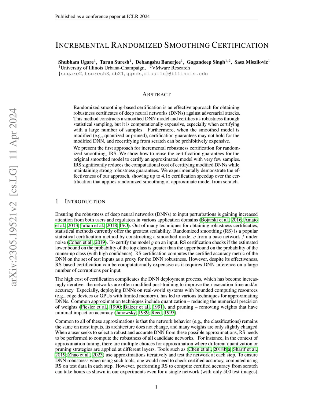 Incremental Randomized Smoothing Certification