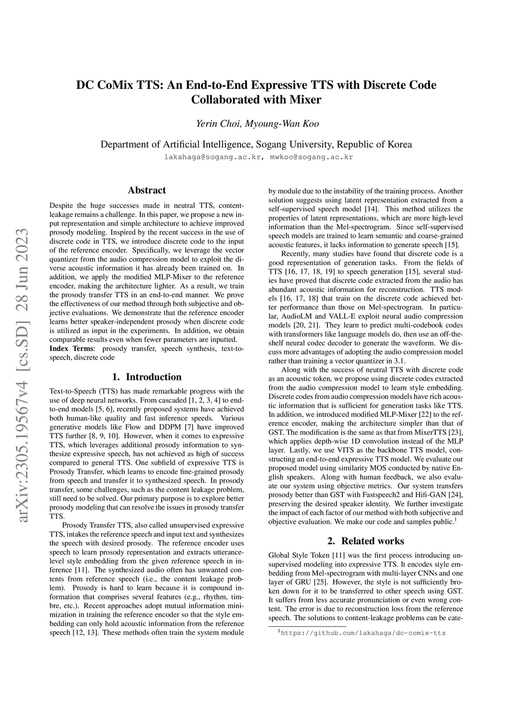 DC CoMix TTS: An End-to-End Expressive TTS with Discrete Code Collaborated with Mixer