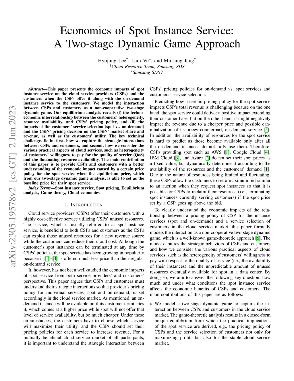 Economics of Spot Instance Service: A Two-stage Dynamic Game Apporach