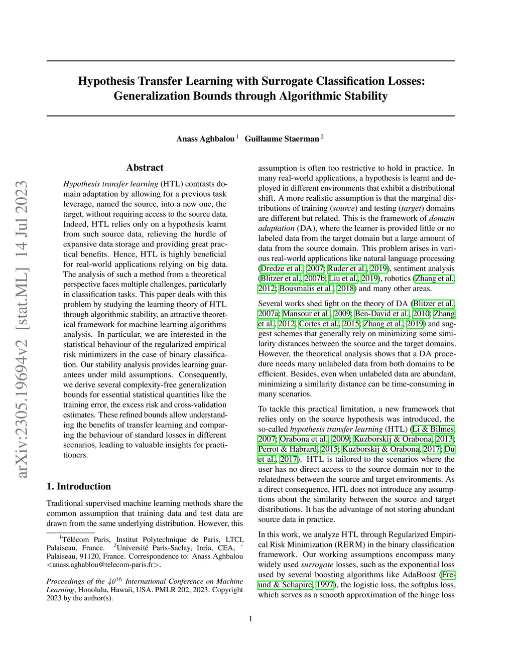 Hypothesis Transfer Learning with Surrogate Classification Losses: