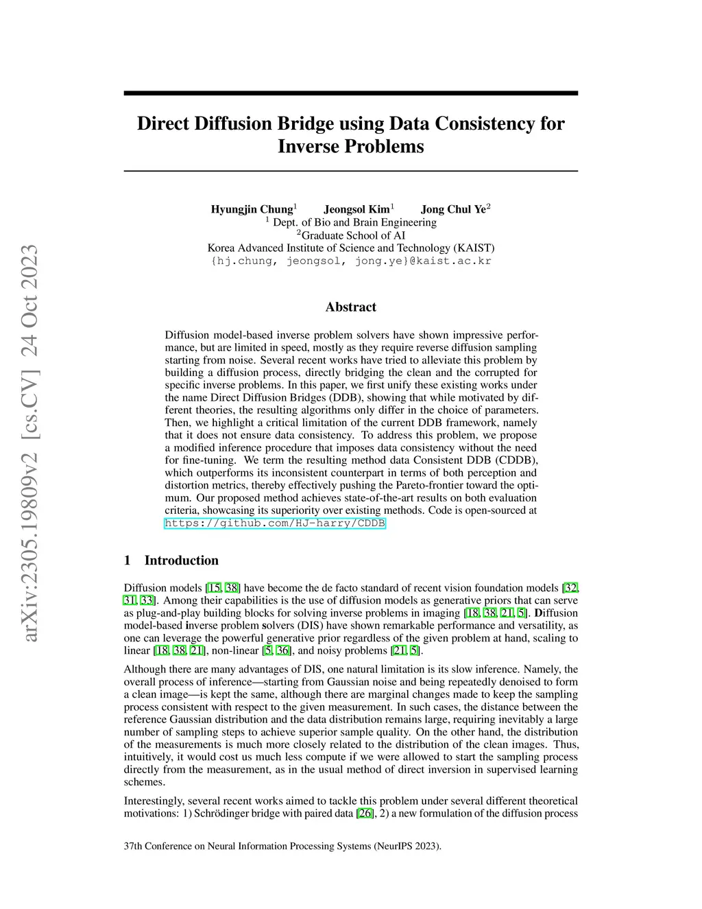 Direct Diffusion Bridge using Data Consistency for Inverse Problems