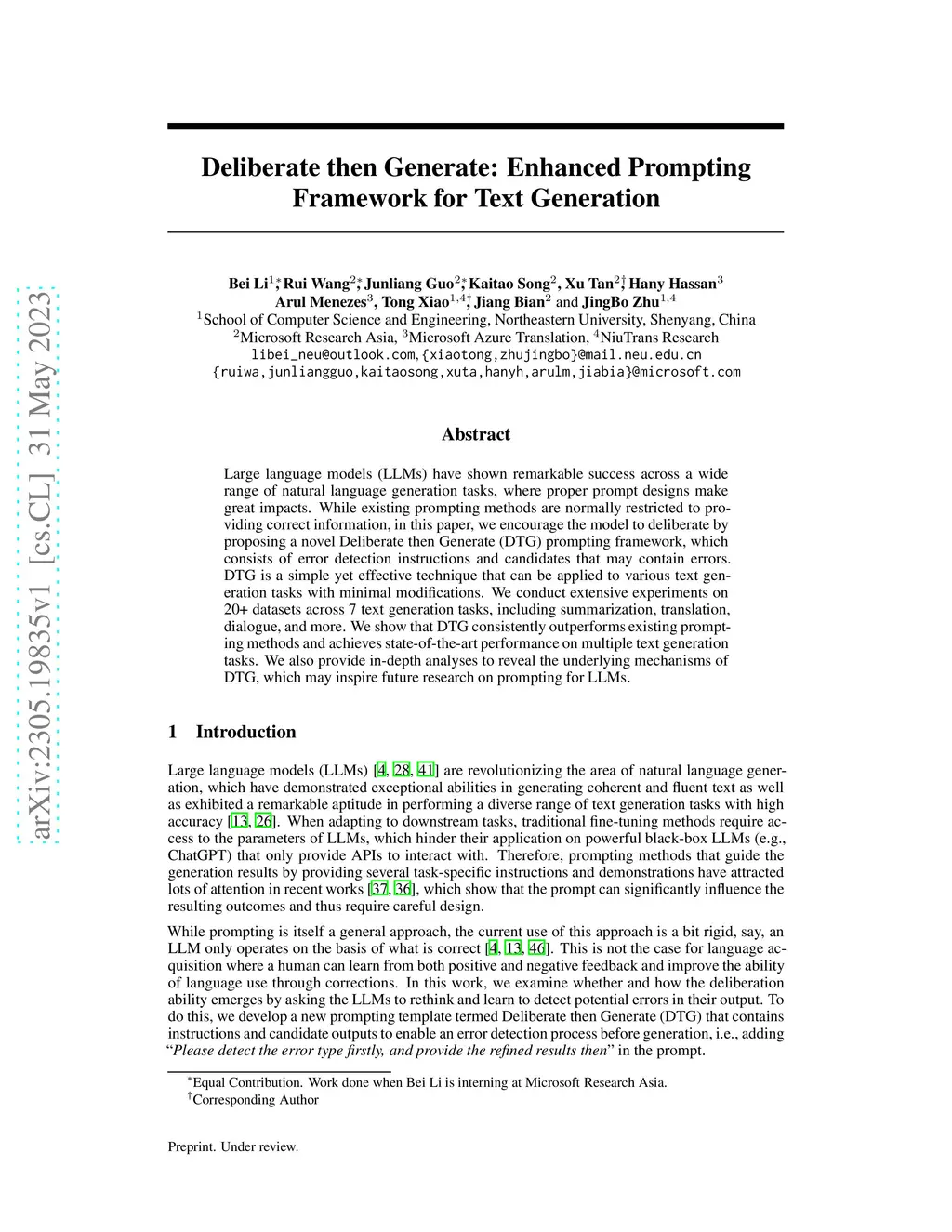 Deliberate then Generate: Enhanced Prompting Framework for Text