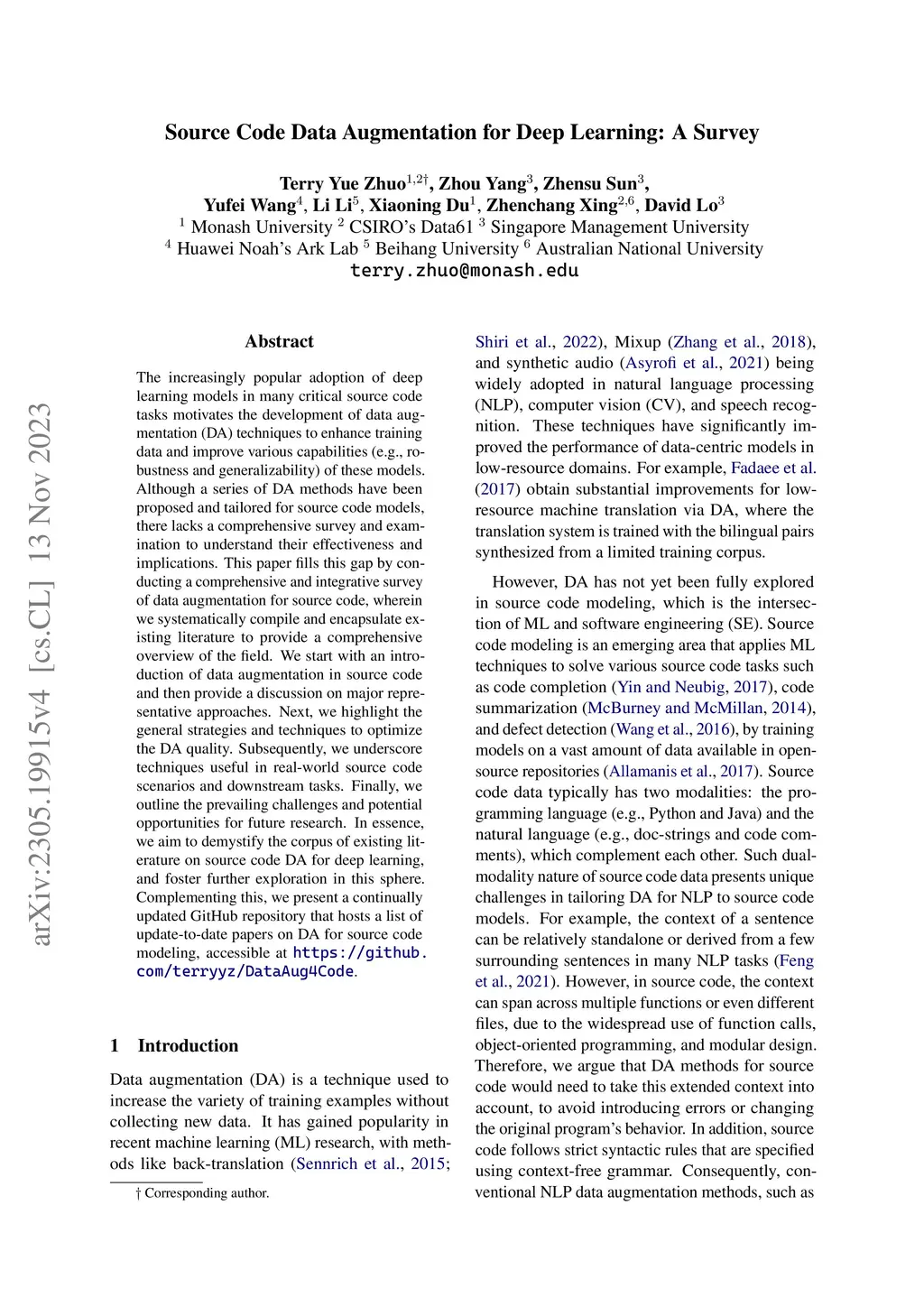 Source Code Data Augmentation for Deep Learning: A Survey