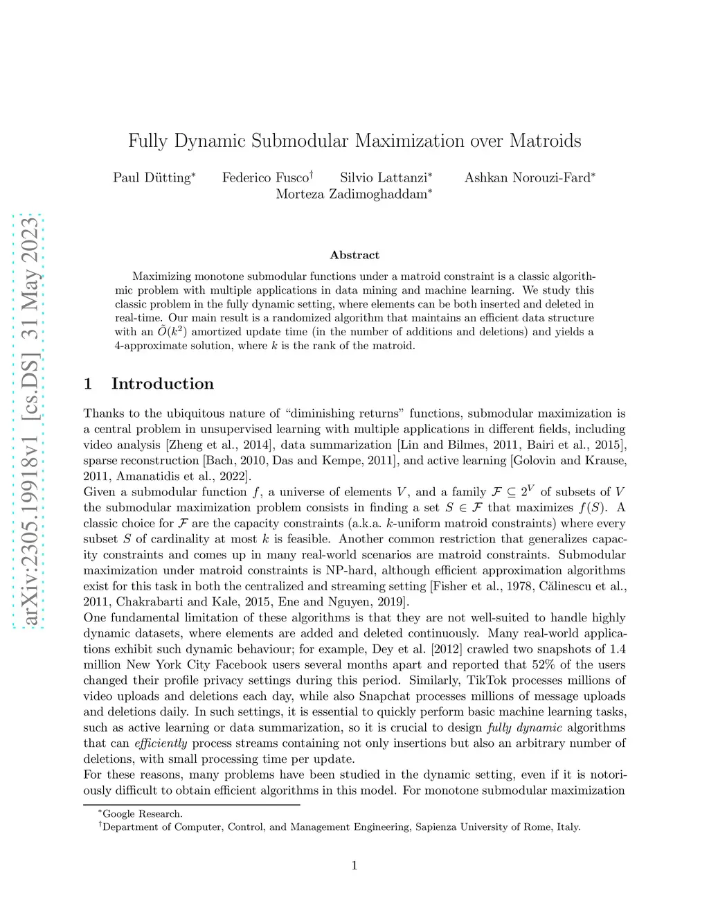 Maximizing monotone submodular functions under a matroid constraint is a classic algorithmic problem with multiple applications in data mining and machine learning. We study this classic problem in the fully dynamic setting, where elements can be both inserted and deleted in real-time. Our main result is a randomized algorithm that maintains an efficient data structure with an amortized update time (in the number of additions and deletions) and yields a -approximate solution, where is the rank of the matroid.