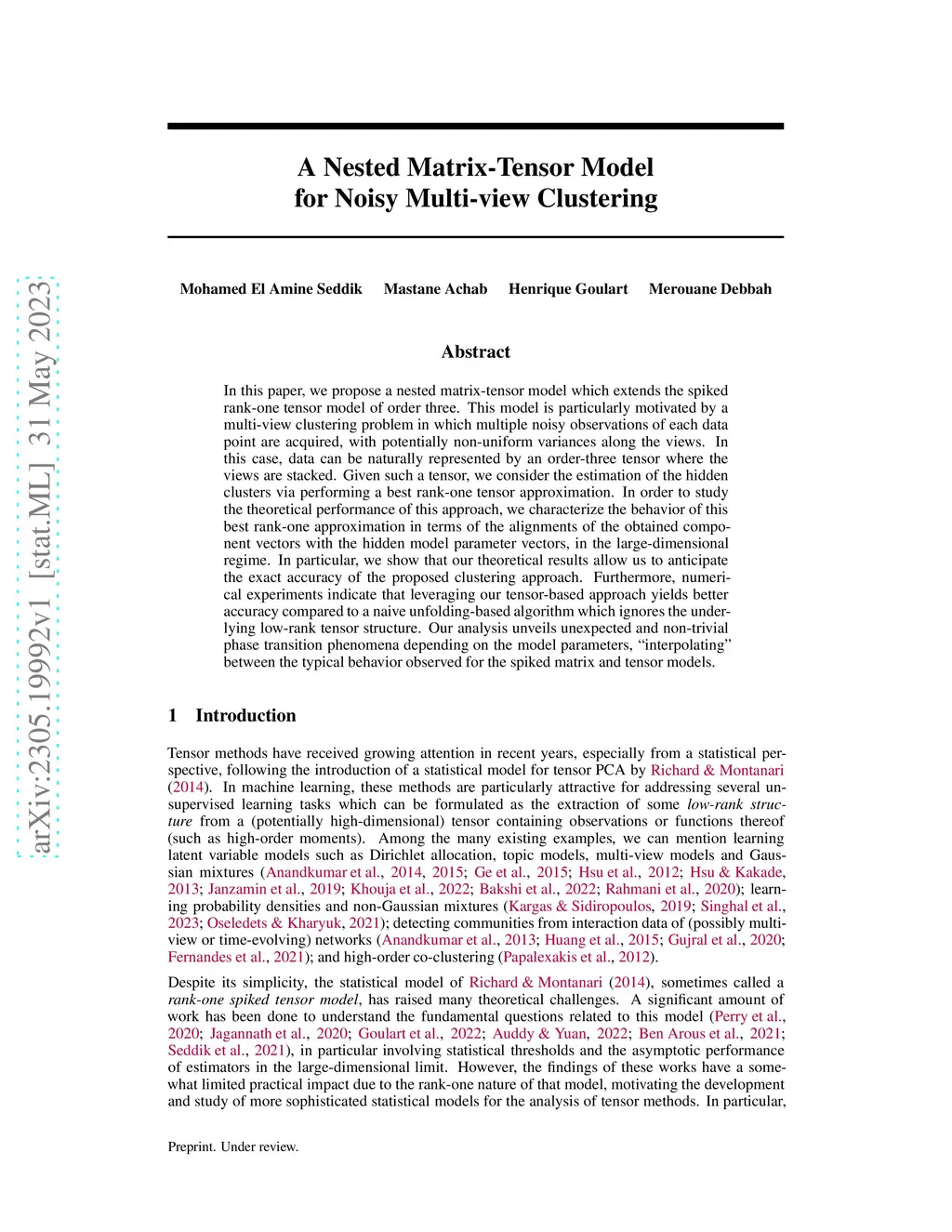 A Nested Matrix-Tensor Model for Noisy Multi-view Clustering