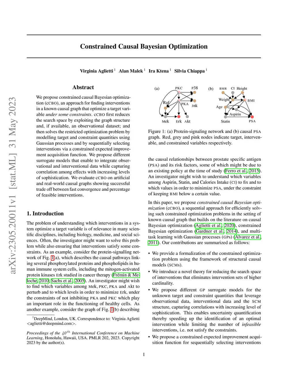 We propose constrained causal Bayesian optimization (cCBO), an approach for finding interventions in a known causal graph that optimize a target variable under some constraints. cCBO first reduces the search space by exploiting the graph structure and, if available, an observational dataset; and then solves the restricted optimization problem by modelling target and constraint quantities using Gaussian processes and by sequentially selecting interventions via a constrained expected improvement acquisition function. We propose different surrogate models that enable to integrate observational and interventional data while capturing correlation among effects with increasing levels of sophistication. We evaluate cCBO on artificial and real-world causal graphs showing successful trade off between fast convergence and percentage of feasible interventions.