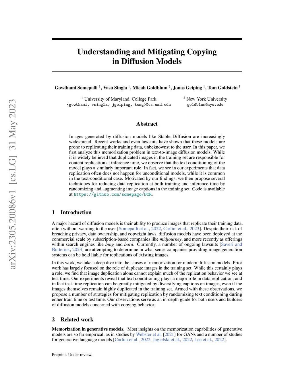 Images generated by diffusion models like Stable Diffusion are increasingly widespread. Recent works and even lawsuits have shown that these models are prone to replicating their training data, unbeknownst to the user. In this paper, we first analyze this memorization problem in text-to-image diffusion models. While it is widely believed that duplicated images in the training set are responsible for content replication at inference time, we observe that the text conditioning of the model plays a similarly important role. In fact, we see in our experiments that data replication often does not happen for unconditional models, while it is common in the text-conditional case. Motivated by our findings, we then propose several techniques for reducing data replication at both training and inference time by randomizing and augmenting image captions in the training set.