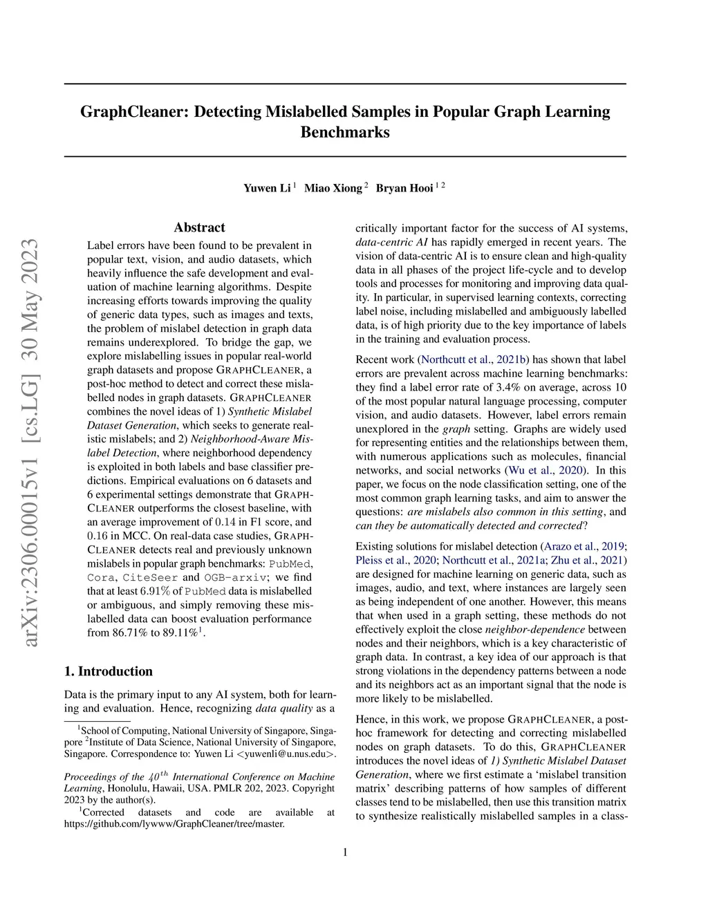 GraphCleaner: Detecting Mislabelled Samples in Popular Graph Learning