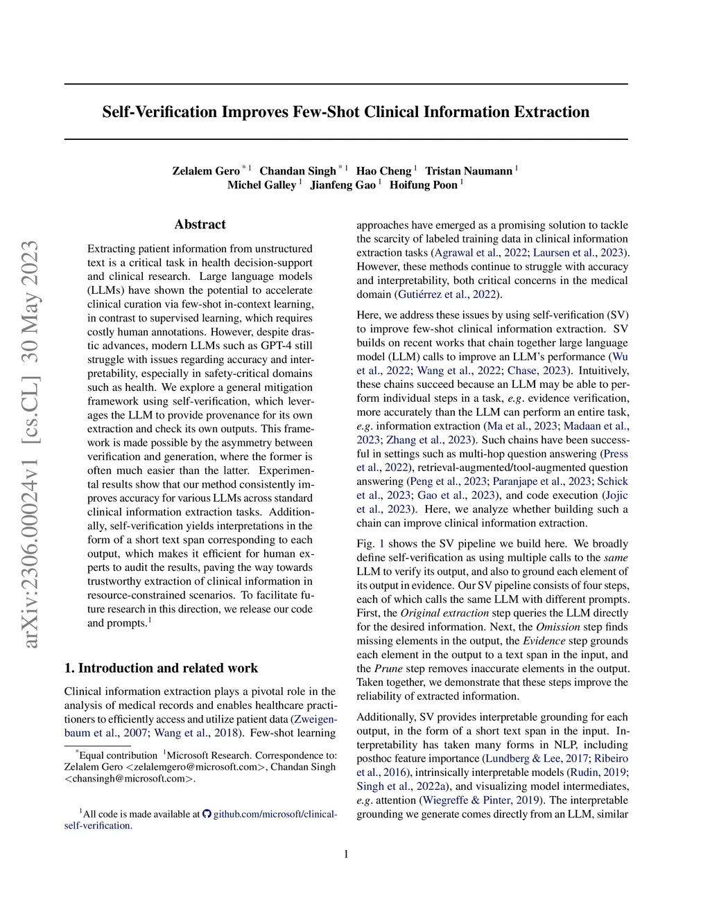Self-Verification Improves Few-Shot Clinical Information Extraction