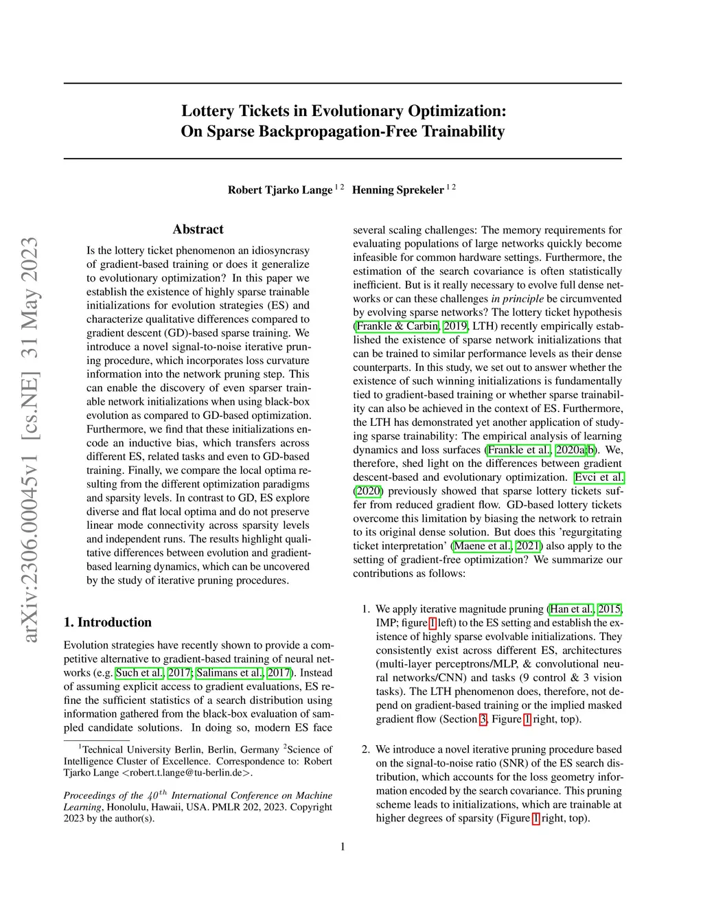 Lottery Tickets in Evolutionary Optimization: On Sparse
