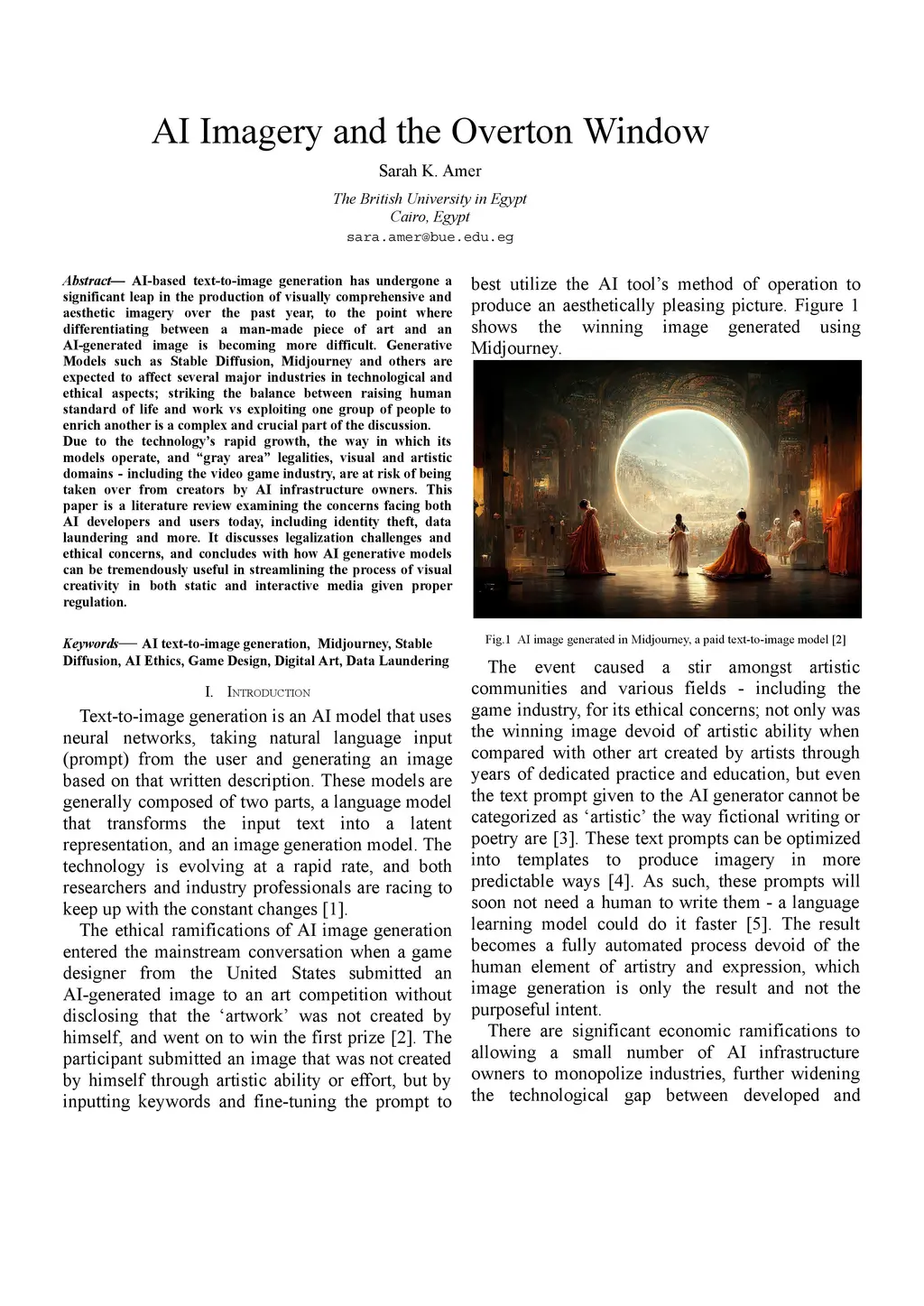 AI-based text-to-image generation has undergone a significant leap in the production of visually comprehensive and aesthetic imagery over the past year, to the point where differentiating between a man-made piece of art and an AI-generated image is becoming more difficult. Generative Models such as Stable Diffusion, Midjourney and others are expected to affect several major industries in technological and ethical aspects. Striking the balance between raising human standard of life and work vs exploiting one group of people to enrich another is a complex and crucial part of the discussion. Due to the rapid growth of this technology, the way in which its models operate, and gray area legalities, visual and artistic domains - including the video game industry, are at risk of being taken over from creators by AI infrastructure owners. This paper is a literature review examining the concerns facing both AI developers and users today, including identity theft, data laundering and more. It discusses legalization challenges and ethical concerns, and concludes with how AI generative models can be tremendously useful in streamlining the process of visual creativity in both static and interactive media given proper regulation. Keywords: AI text-to-image generation, Midjourney, Stable Diffusion, AI Ethics, Game Design, Digital Art, Data Laundering