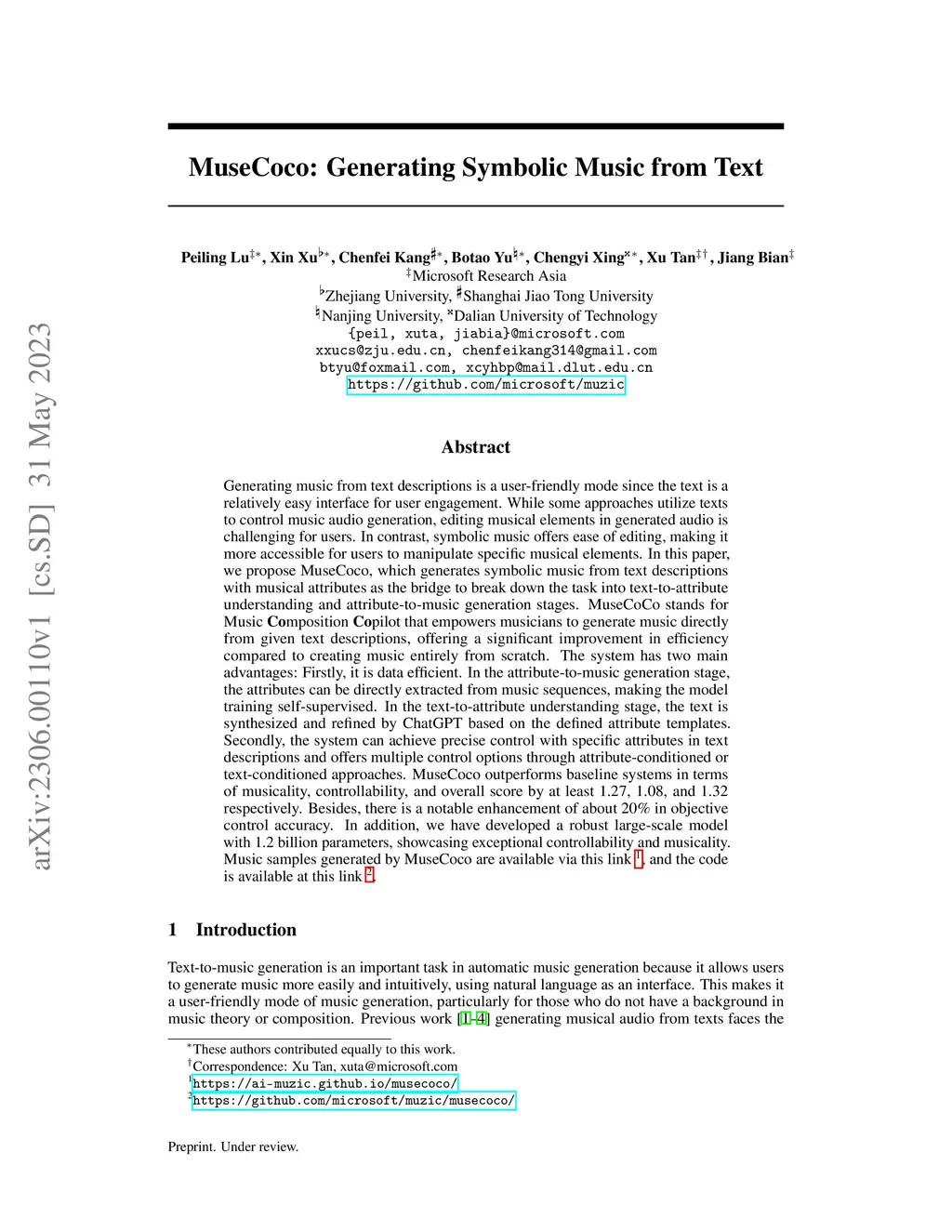 MuseCoco: Generating Symbolic Music from Text