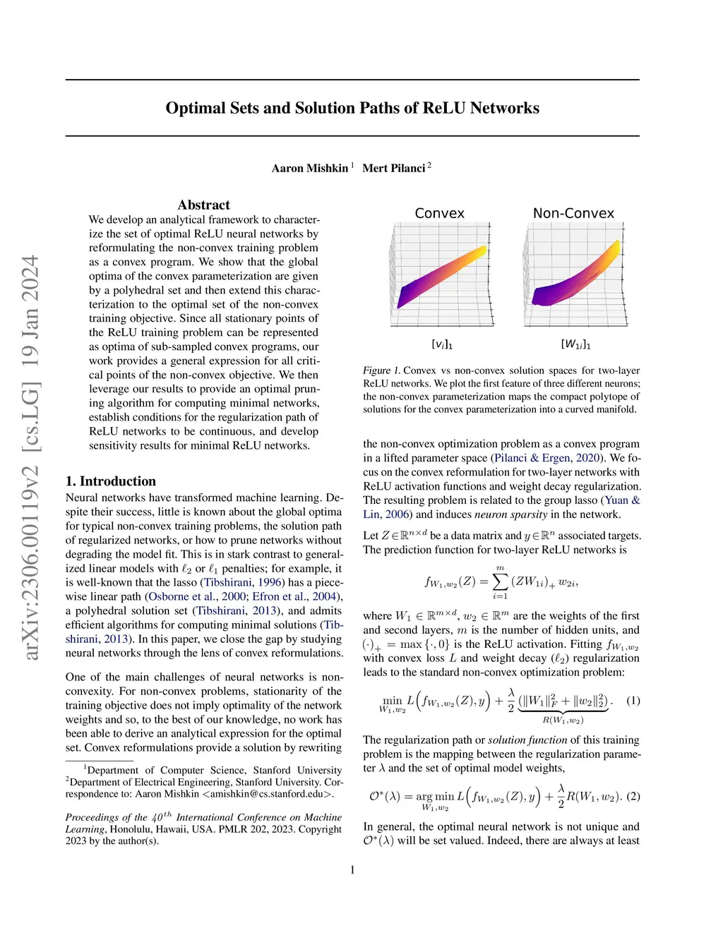 We develop an analytical framework to characterize the set of optimal ReLU neural networks by reformulating the non-convex training problem as a convex program. We show that the global optima of the convex parameterization are given by a polyhedral set and then extend this characterization to the optimal set of the non-convex training objective. Since all stationary points of the ReLU training problem can be represented as optima of sub-sampled convex programs, our work provides a general expression for all critical points of the non-convex objective. We then leverage our results to provide an optimal pruning algorithm for computing minimal networks, establish conditions for the regularization path of ReLU networks to be continuous, and develop sensitivity results for minimal ReLU networks.