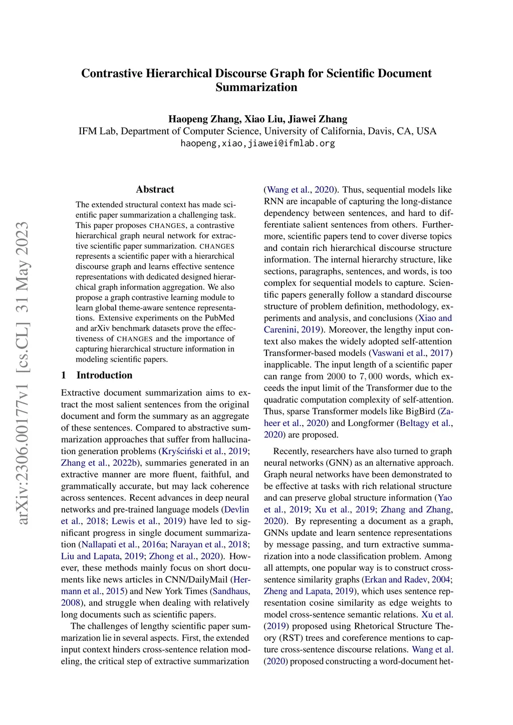 Contrastive Hierarchical Discourse Graph for Scientific Document