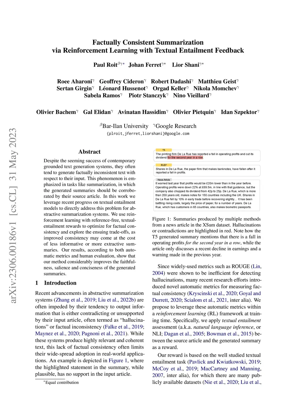 Factually Consistent Summarization via Reinforcement Learning with