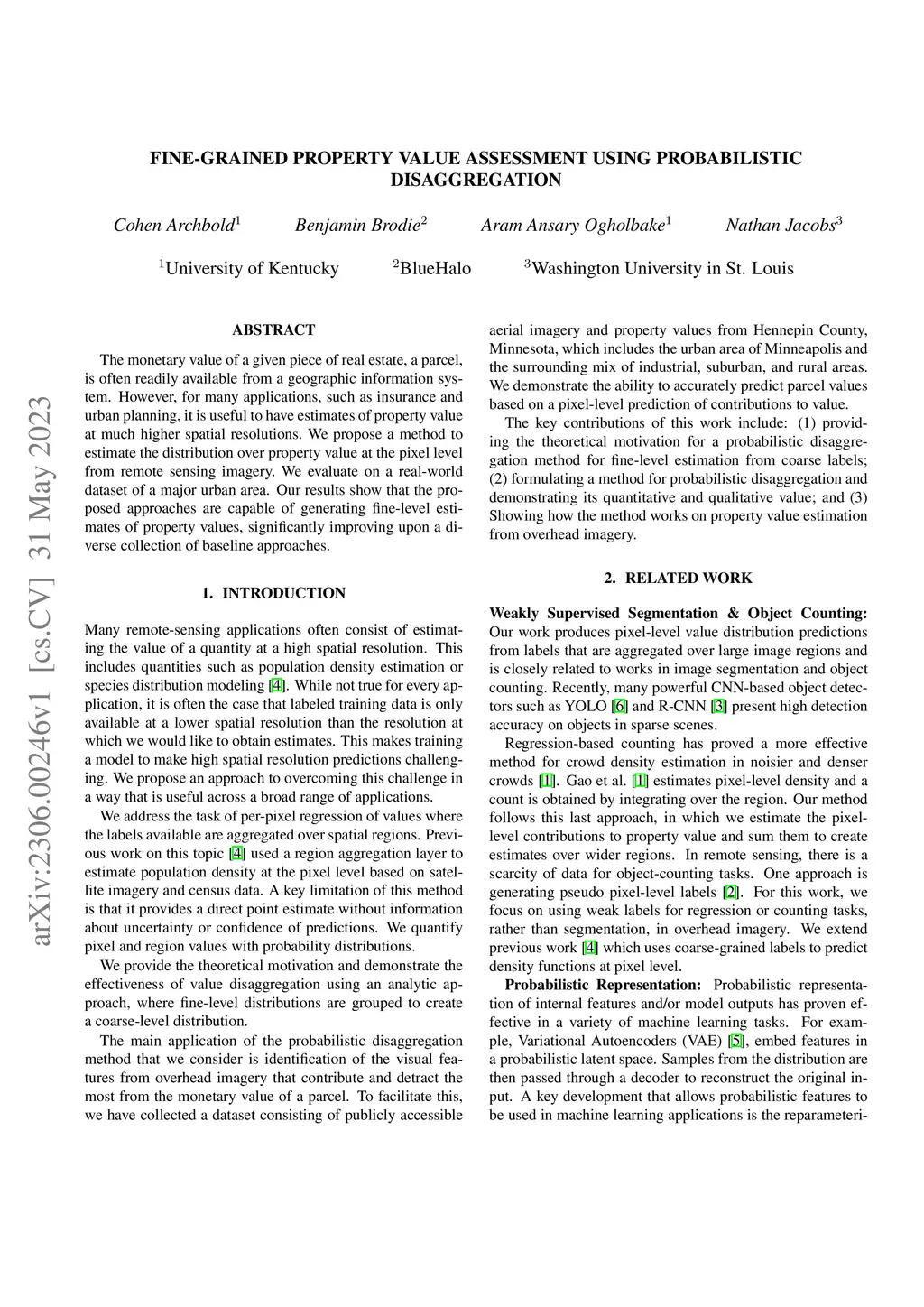 The monetary value of a given piece of real estate, a parcel, is often readily available from a geographic information system. However, for many applications, such as insurance and urban planning, it is useful to have estimates of property value at much higher spatial resolutions. We propose a method to estimate the distribution over property value at the pixel level from remote sensing imagery. We evaluate on a real-world dataset of a major urban area. Our results show that the proposed approaches are capable of generating fine-level estimates of property values, significantly improving upon a diverse collection of baseline approaches.