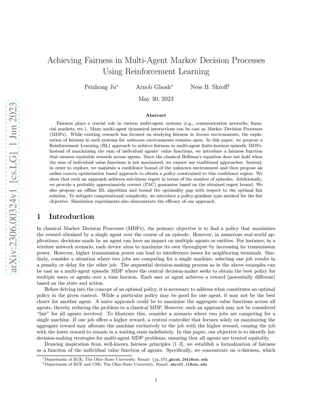 Achieving Fairness in Multi-Agent Markov Decision Processes Using