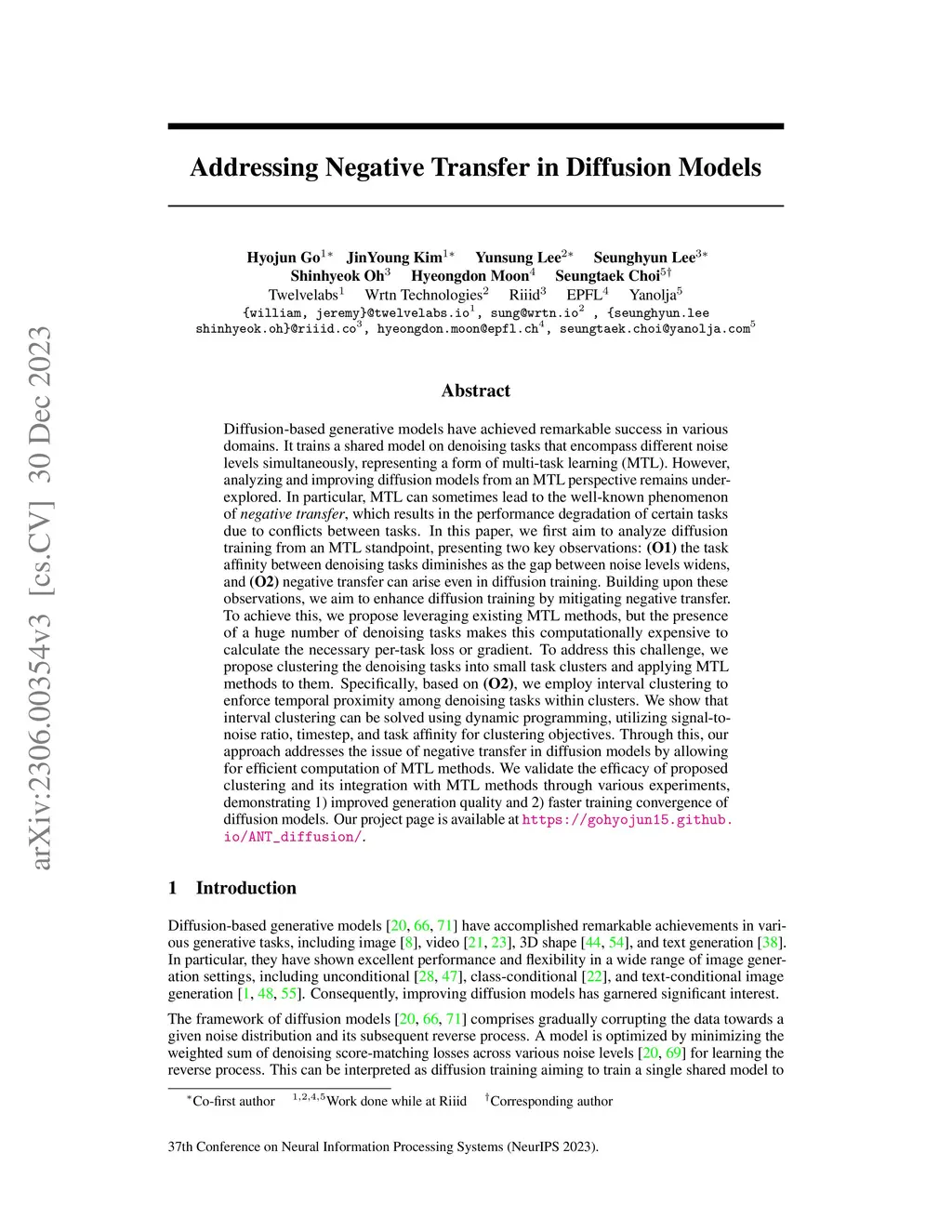 Addressing Negative Transfer in Diffusion Models